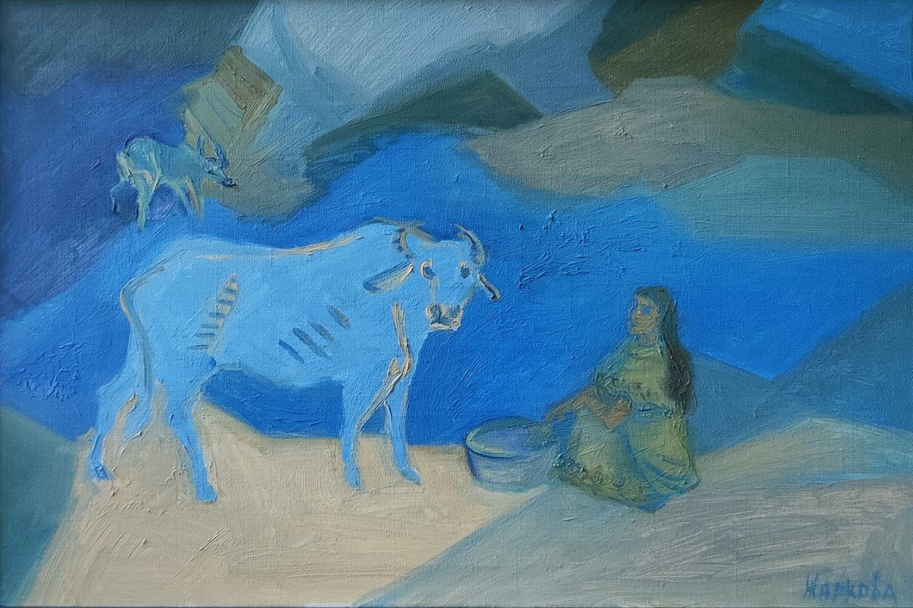 Работа Дианы Гатауллиной размышляет о смене эпох, исчезновении океанов и камнях дольменов, возведённых людьми, верившими в чудо. В логике Книги Перемен она символизирует цикличность времени и связь прошлого с будущим. Картина напоминает, что прошлое и будущее переплетаются, и каждый момент несёт наследие веры, труда и надежды, оставляя следы для последующих поколений.