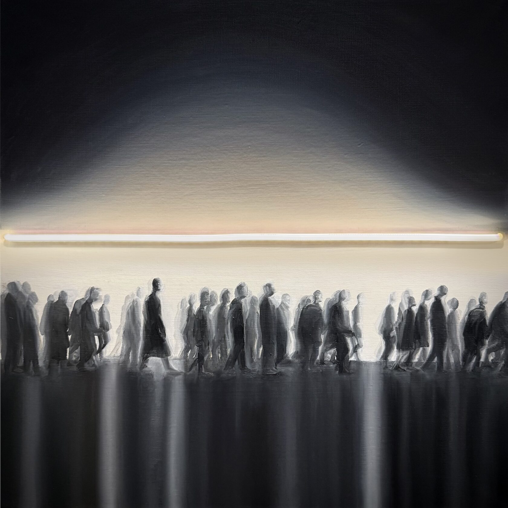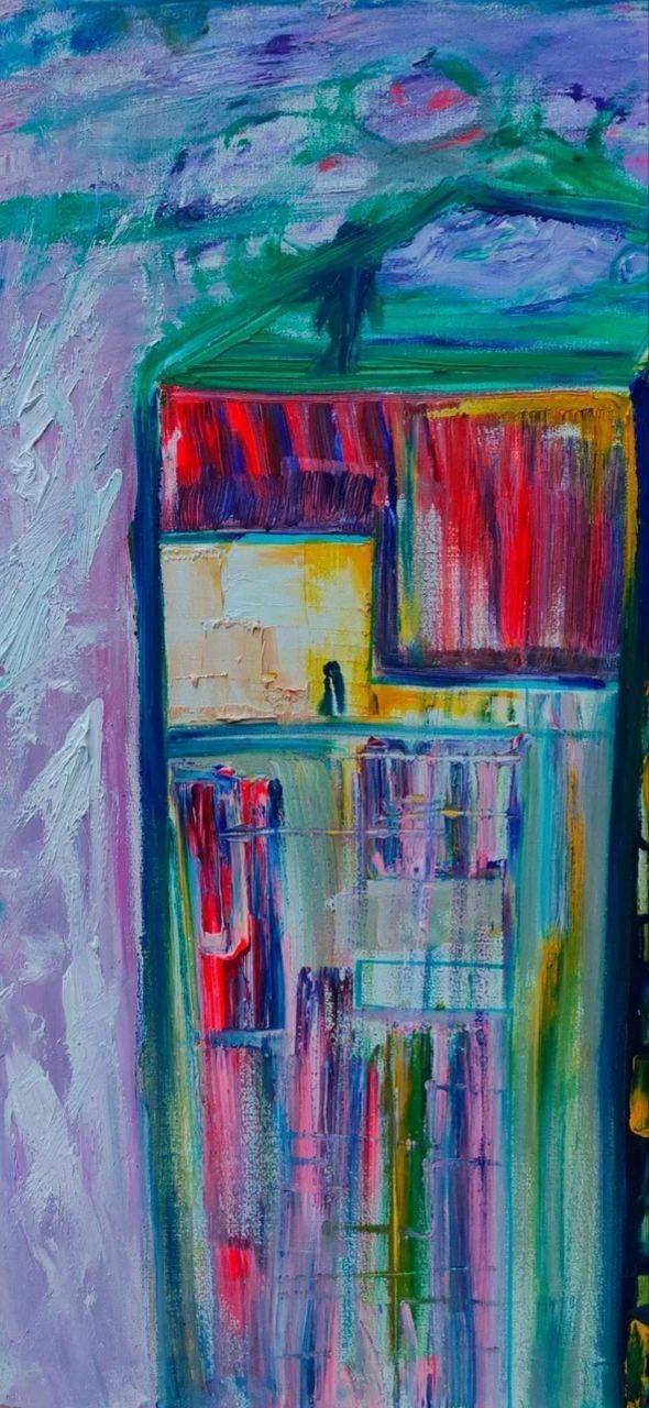 Работа Кристины Хацкевич исследует пространство, где движение возможно, но ограничено невидимой границей. В логике Книги Перемен неоновая полоса символизирует ориентир, одновременно задающий пределы свободы. Картина напоминает, что наш выбор формируется не только внутренним намерением, но и условиями среды, и истинная свобода рождается в осознанном взаимодействии с ними.