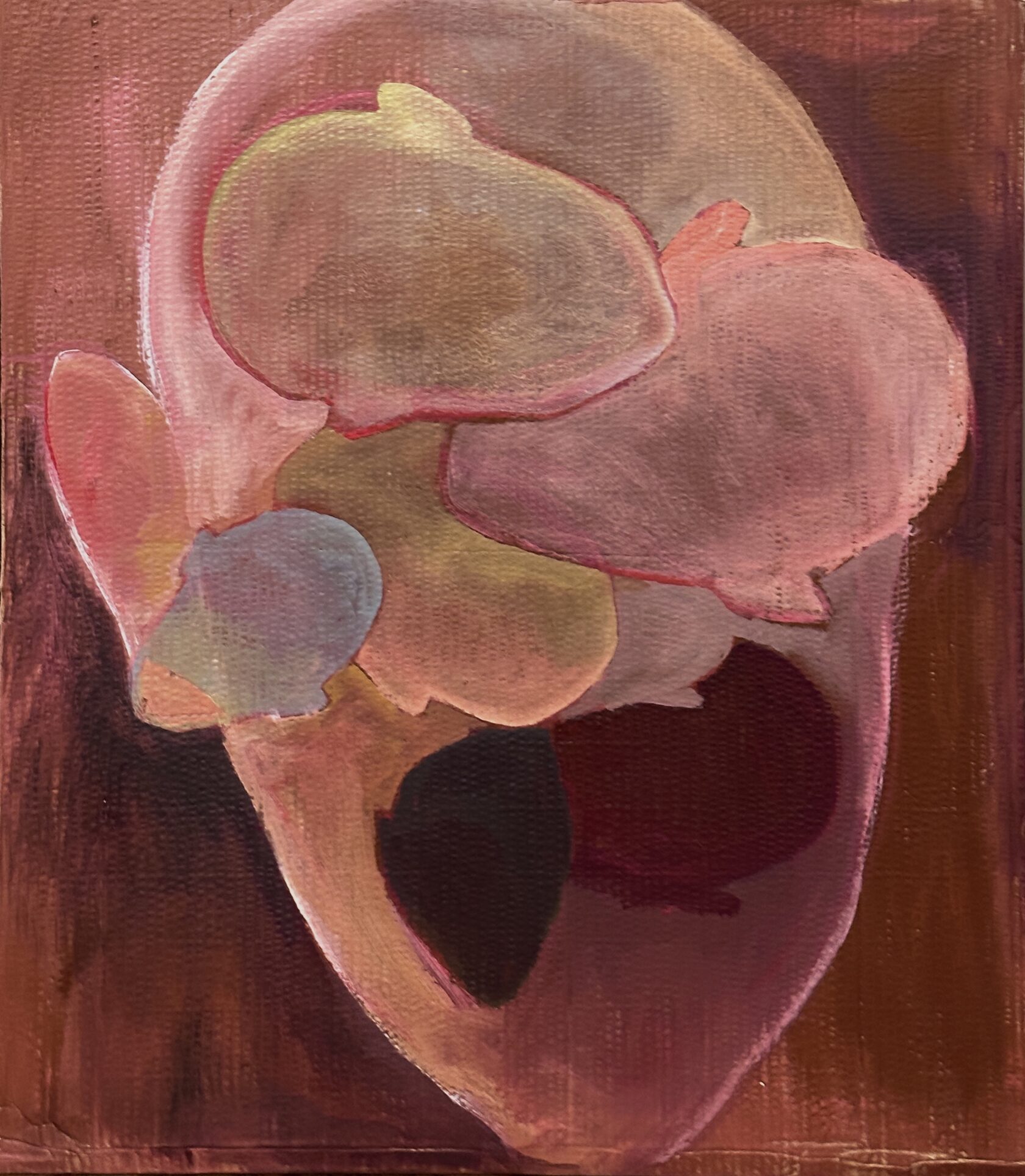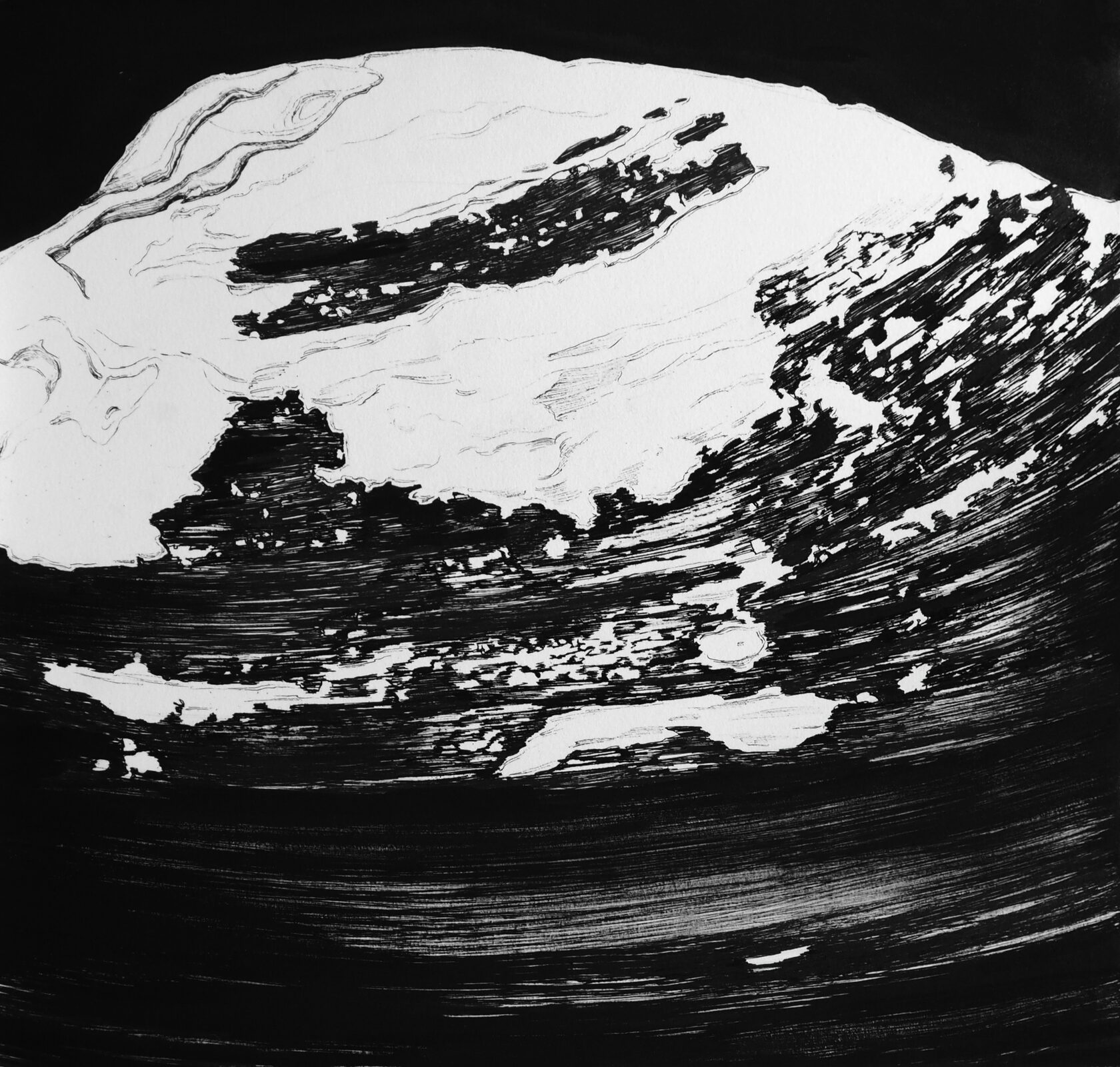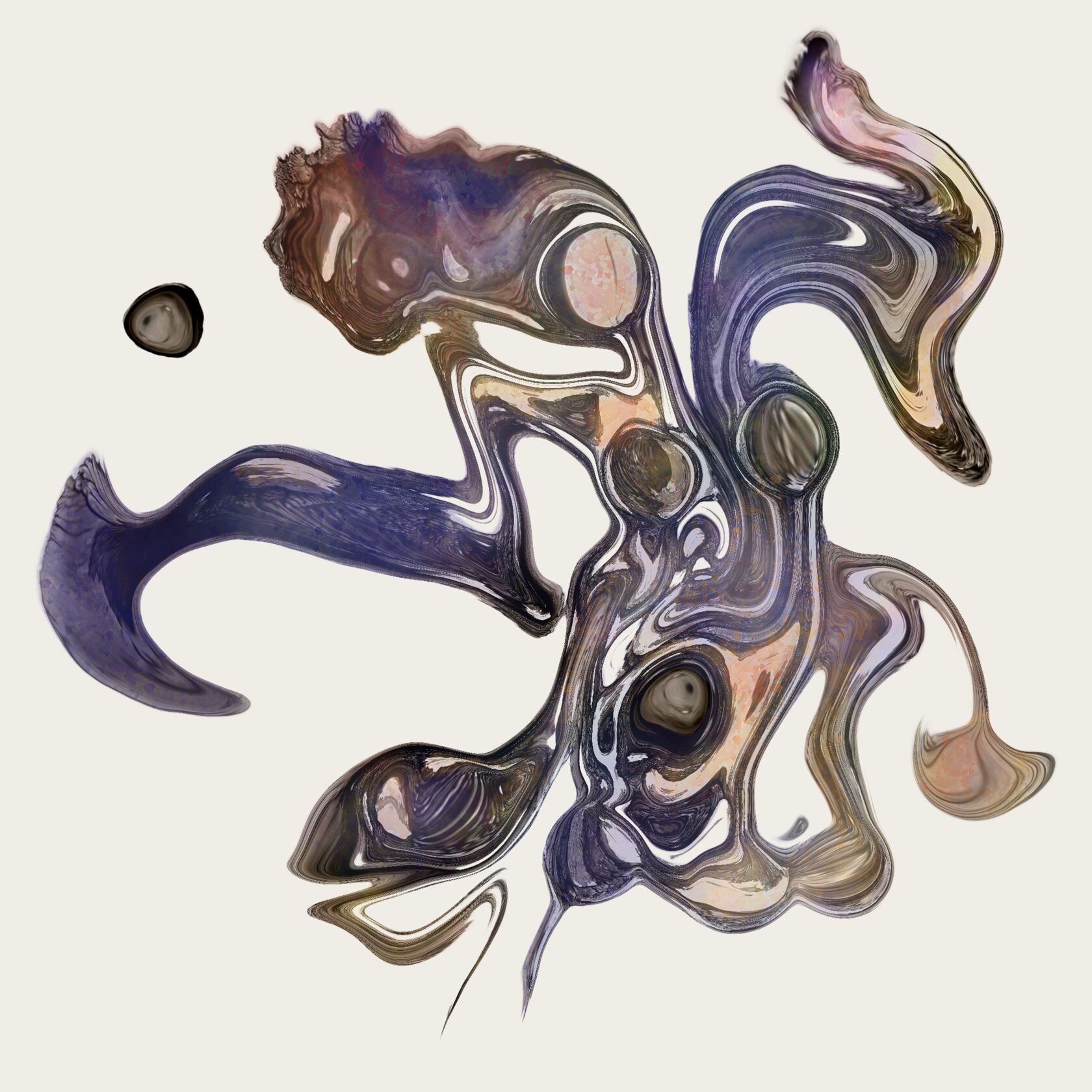 Работа Полины Волкоморовой исследует раковину как архив жизни: кольца роста фиксируют взаимодействие с окружающей средой и случайные события, создавая уникальный отпечаток. В логике Книги Перемен она символизирует двойственность существования - между живым и мёртвым, явным и скрытым. Картина напоминает, что даже тихие и невидимые слои жизни несут память и субъектность, открывая пространство для размышлений о собственной внутренней истории.