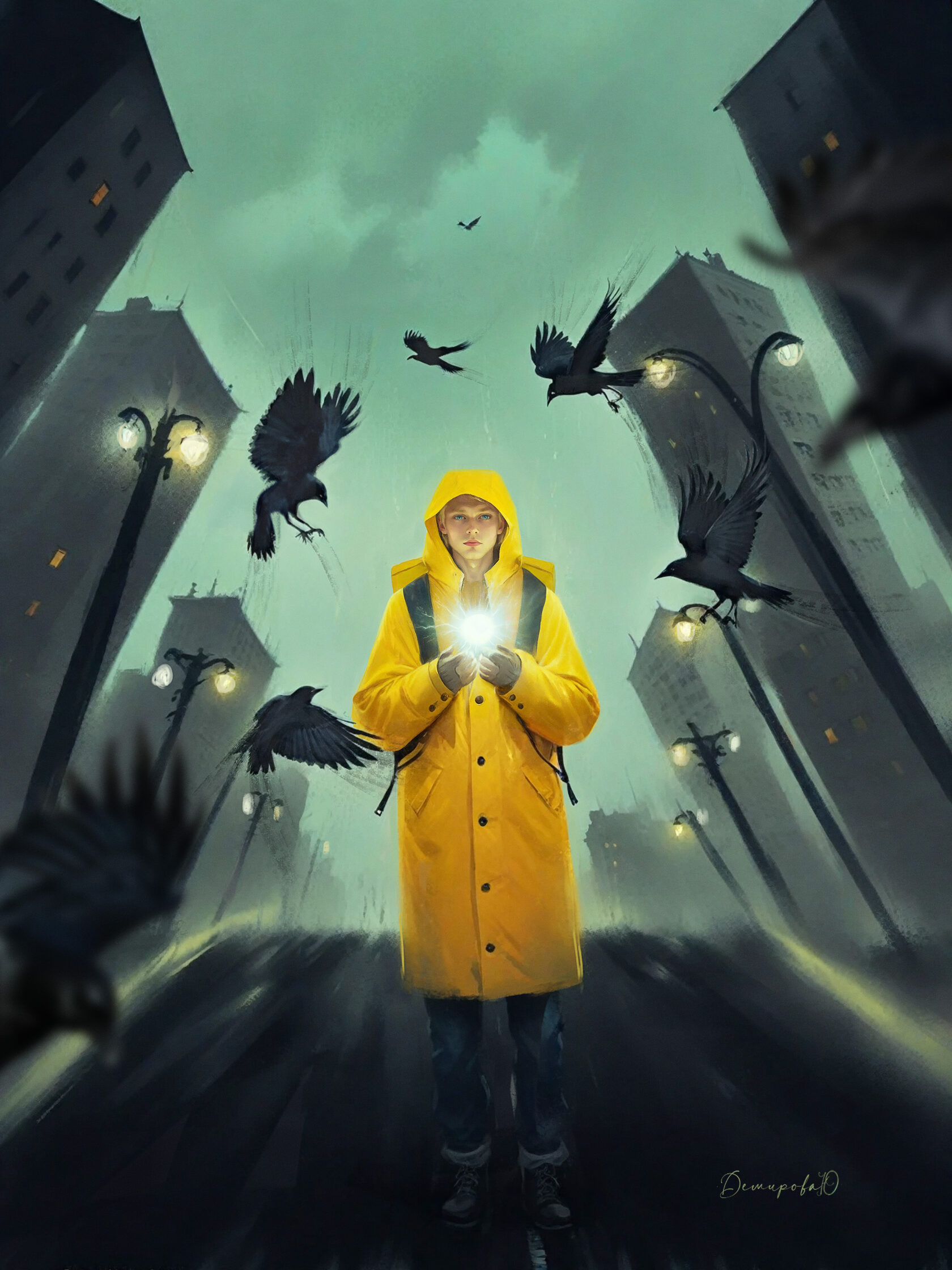 Работа Юлии Демировой прочитывается как знак внутреннего света, возникающего из самой глубины человека. Исходящее из груди сияние противостоит тревоге и неопределённости, воплощённым в образах тёмных воронов. Этот свет указывает на способность сохранять надежду и опору даже в периоды мрака и тяжести.