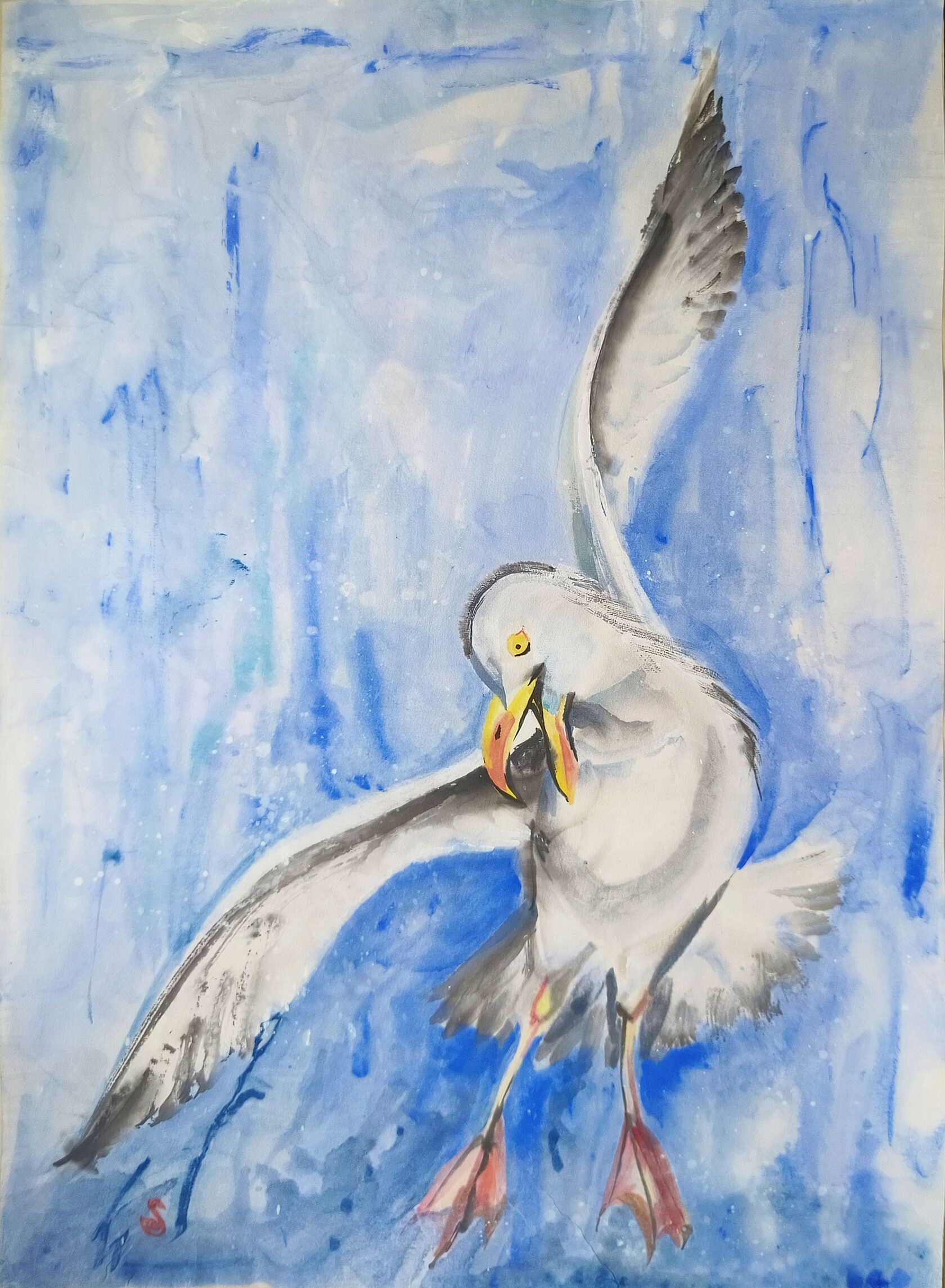Ольга Рослова видит работу как завершение этапа своей жизни и воспоминание о спектакле «Чайка», режиссёром которого был погибший Юрий Бутусов. Она ощущает себя одновременно счастливой и свободной, словно чайка, летящая против ветра. Внутреннее притяжение к озеру символизирует её связь с прошлым и творческим опытом. Работа отражает движение между свободой и привязанностью, между полётом и возвратом к истокам.