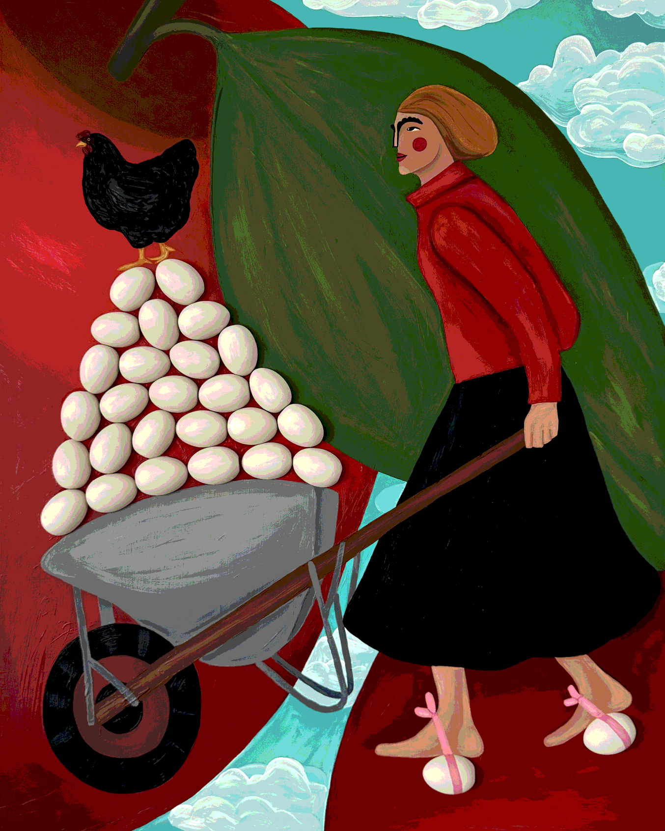 Работа Ольги Бережновой изображает будущее как поверхность яичной скорлупы: любое резкое движение может разрушить ещё формирующееся. В логике Книги Перемен она символизирует осторожность, внимательность и бережное отношение к опыту, отношениям и планам. Женщина на картине движется вперёд медленно, напоминая, что осознанные действия и терпение сохраняют хрупкое равновесие и открывают путь к созреванию будущего.