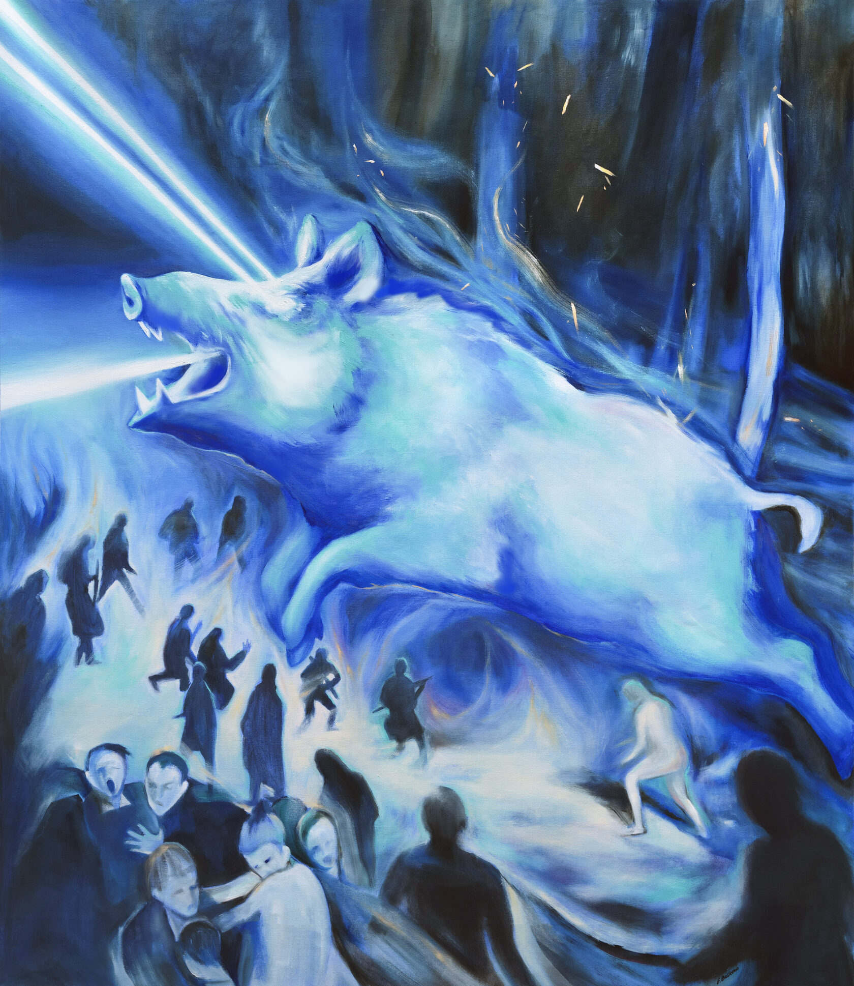 Работа Евгении Белковой прочитывается как знак настоящего, в котором мифологическое прорывается сквозь повседневность. Образ Левиафана рождается из коллективных тревог и неясных предчувствий, не поддающихся рациональному упорядочиванию. В логике перемен эта фигура указывает на момент перенасыщения реальности, когда скрытая сила становится зримой и требует осознания.