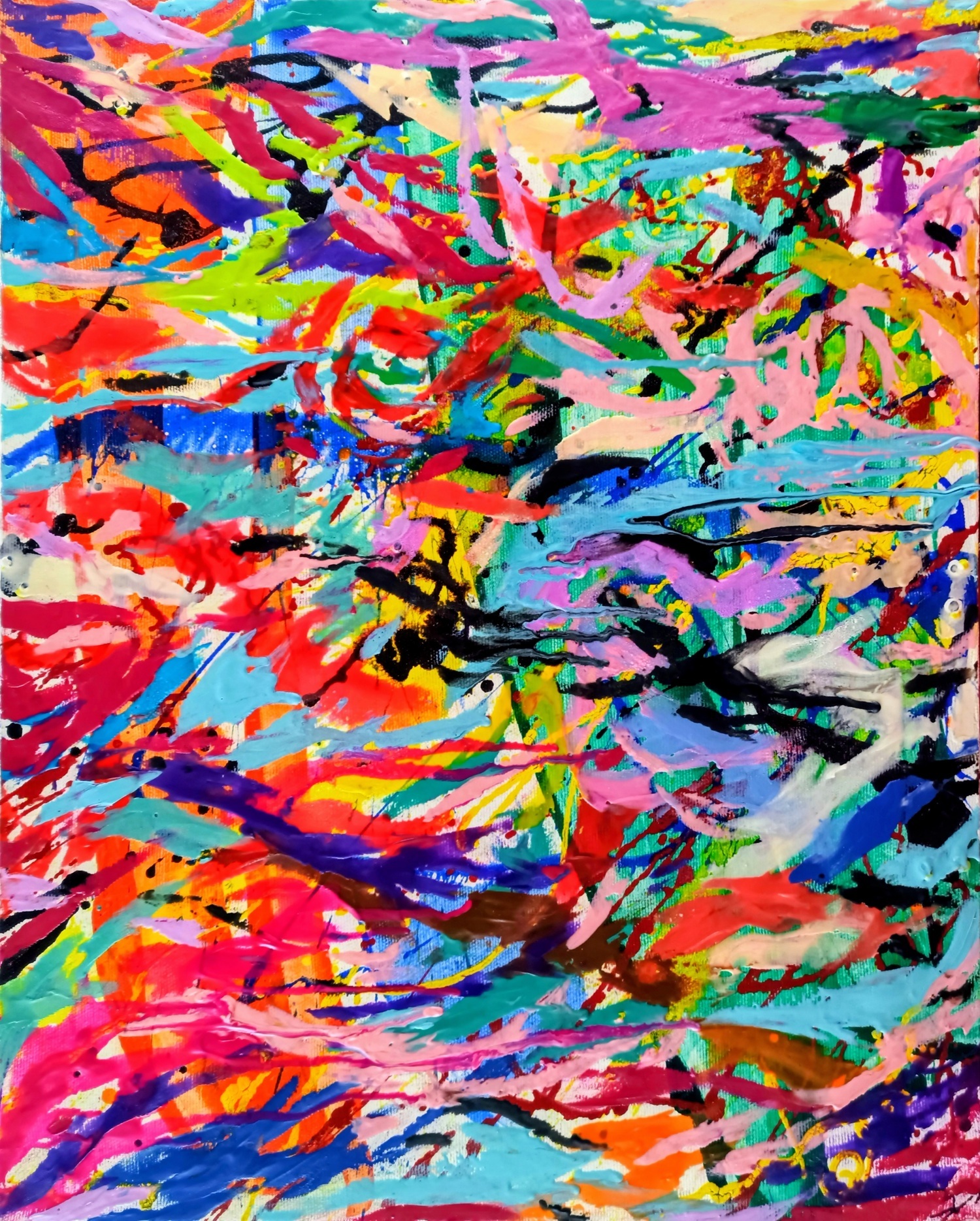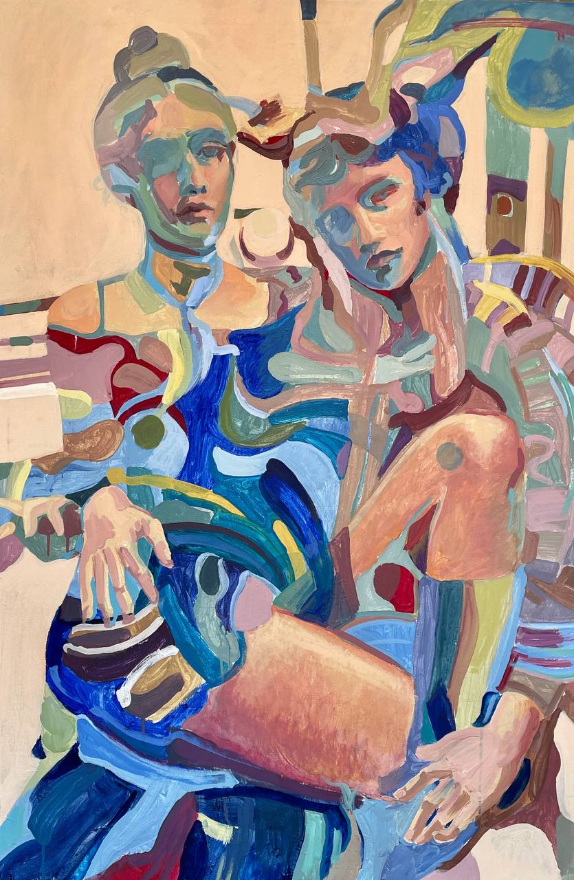Работа Аделины Толоконниковой «Слияние» изображает отношения двух людей, словно слитых в одно целое через цвета и краски. В логике Книги Перемен она символизирует поиск целостности и понимание созависимости: тела переплетаются физически, отражая стремление найти недостающую половину. Картина напоминает о древнем мифе Платона и о том, что стремление к соединению несёт и страдания, и развитие. Яркие цвета и динамика работы отражают эмоциональную интенсивность и шаг общества к осознанию сложностей близких отношений.