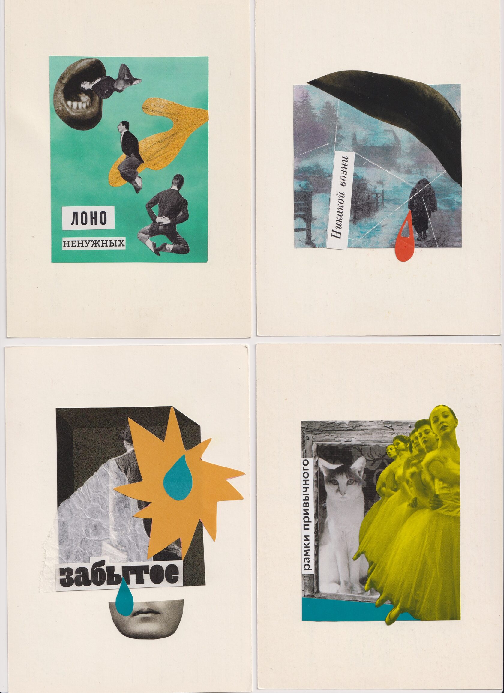 Работы Юли Лариной фиксируют внутренние события, редко получающие внешнее признание, и делают видимым то, что обычно остаётся в тени. В логике Книги Перемен открытка становится символической формой, придающей значение переживаниям, позволяя признать уязвимость и значимость внутреннего опыта. Открытки напоминают, что мимолётные впечатления оставляют отпечаток, а визуальное схватывание через символы служит намёком и предсказанием для тех, кто способен их прочесть.