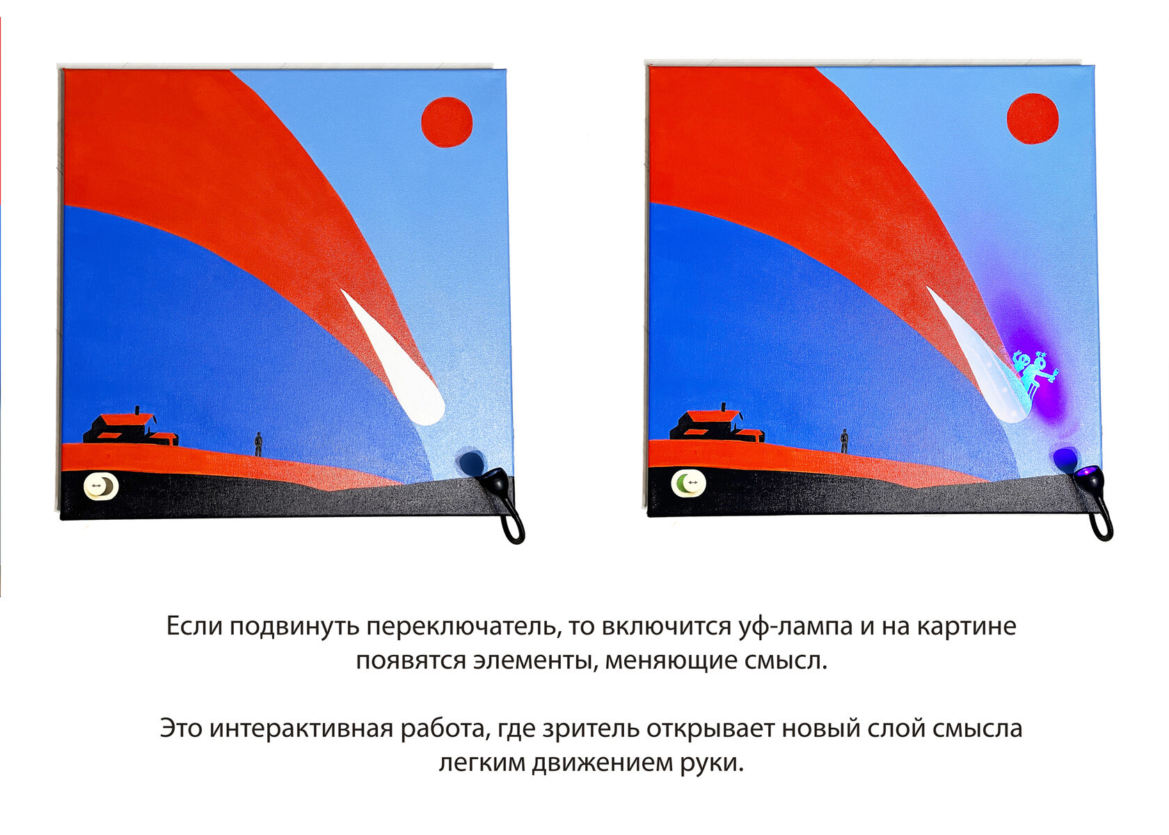 Работа Екатерины Рыжиковой прочитывается как игра с ожиданием и иллюзией угрозы. Образ кометы, превращающейся в замаскированный корабль, смещает фокус с страха на иронию и праздник. В логике перемен это знак времени, когда граница между космическим событием, мифом и информационным поводом становится подвижной и неоднозначной.