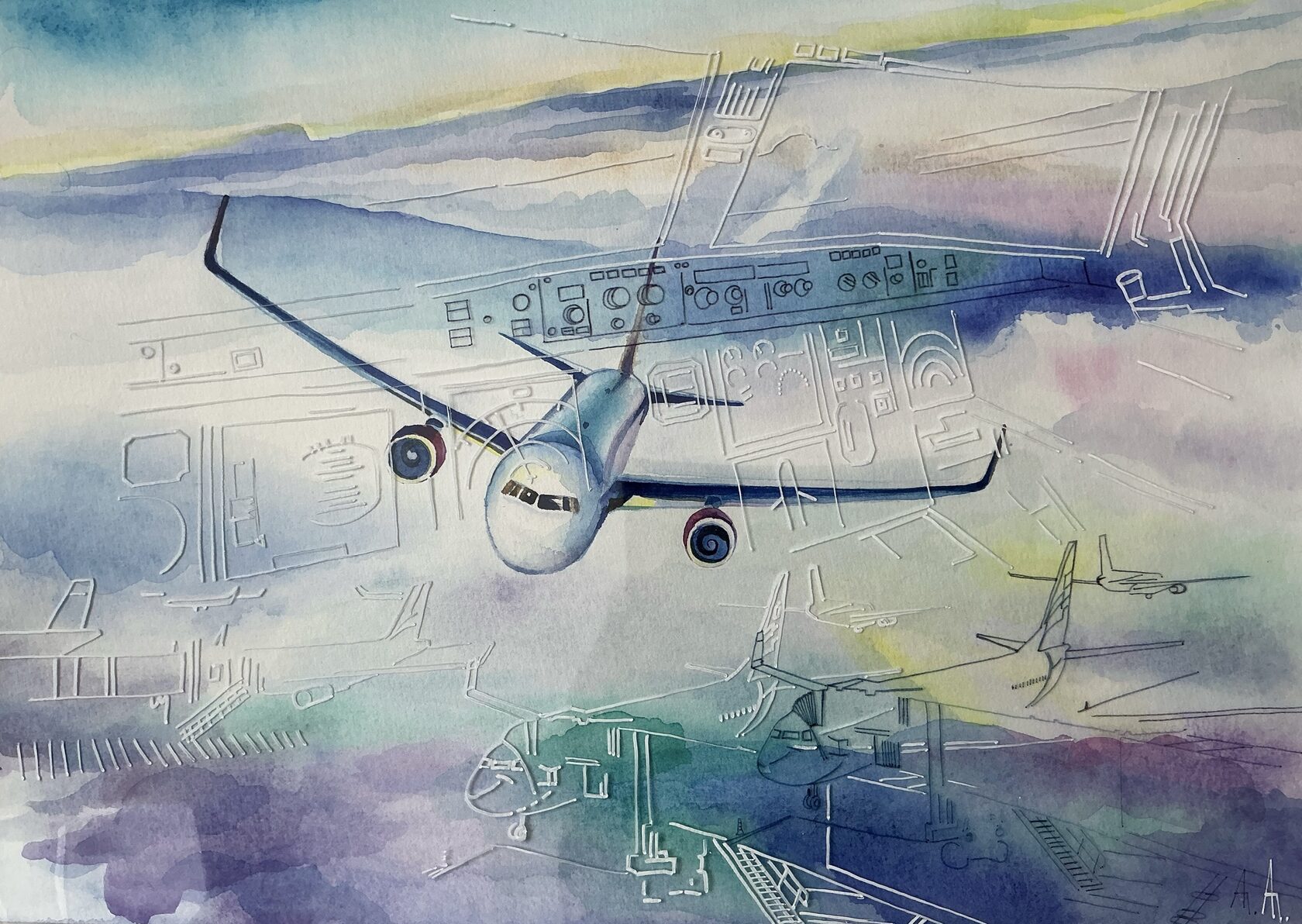 Работа Анны Парменовой изображает самолёт, символ движения, перемен и стремления к новым горизонтам. В логике Книги Перемен она отражает переходные моменты, когда человек оставляет старое и устремляется к неизведанному. Картина напоминает о важности осознанного полёта - как внешнего, так и внутреннего - и о том, что любое движение несёт с собой новые возможности и ответственность.